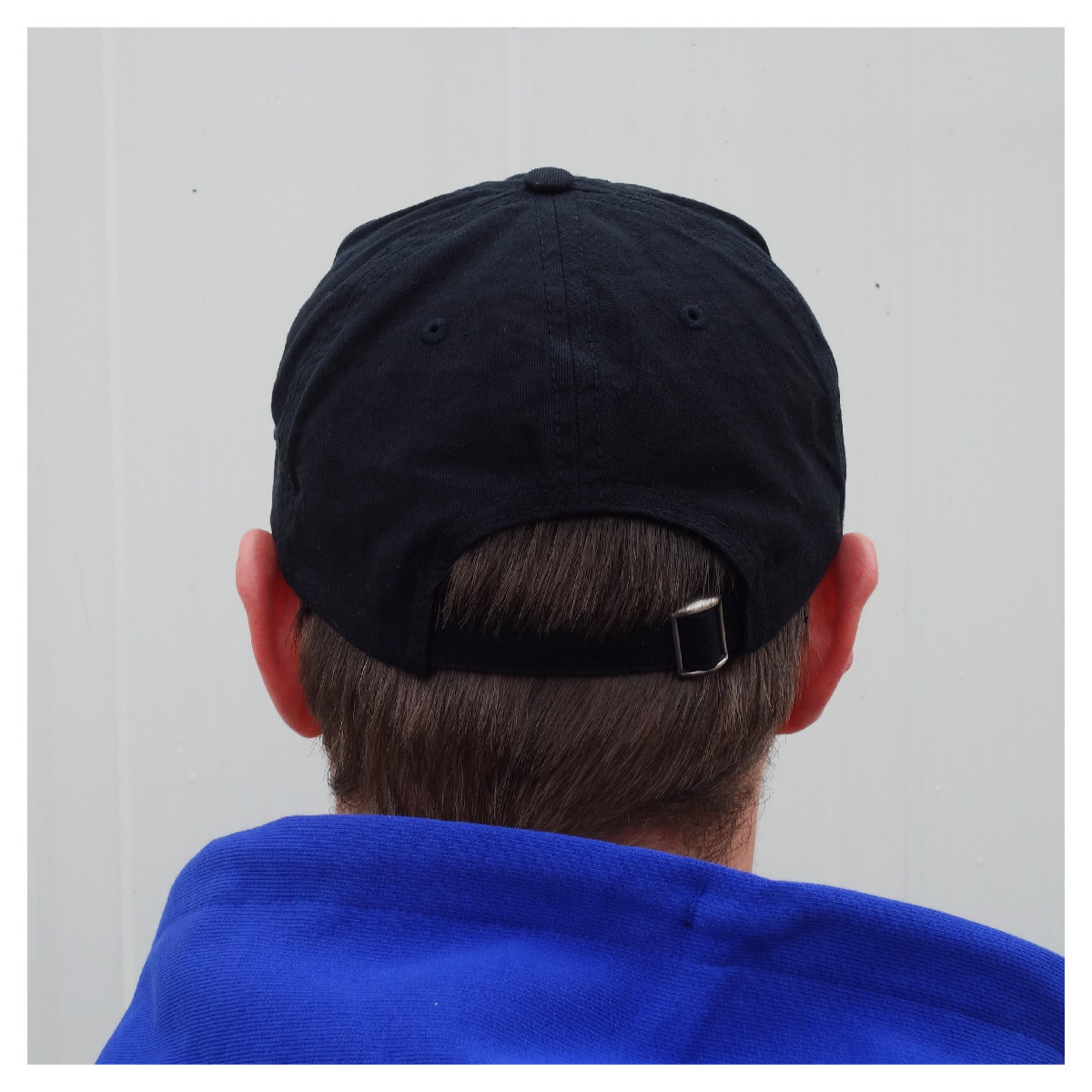 - adjustable size with strapback (fabric closure)