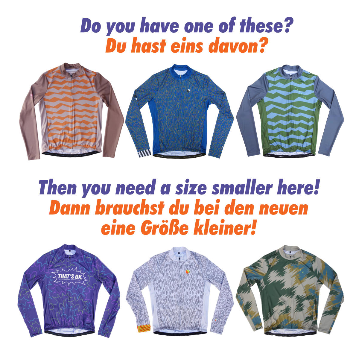 I have changed the sizes here. If you have one of last year’s long-sleeved jerseys, you can go one size smaller here. For example, if you had an XL, an L will now fit you.